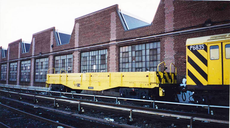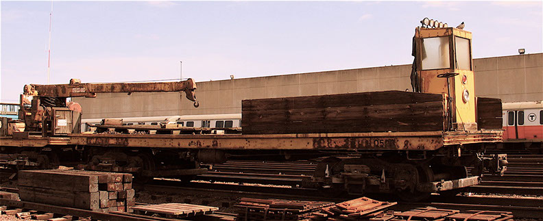 Laconia built flat car on the MBTA / Orange line. Boston, MA.